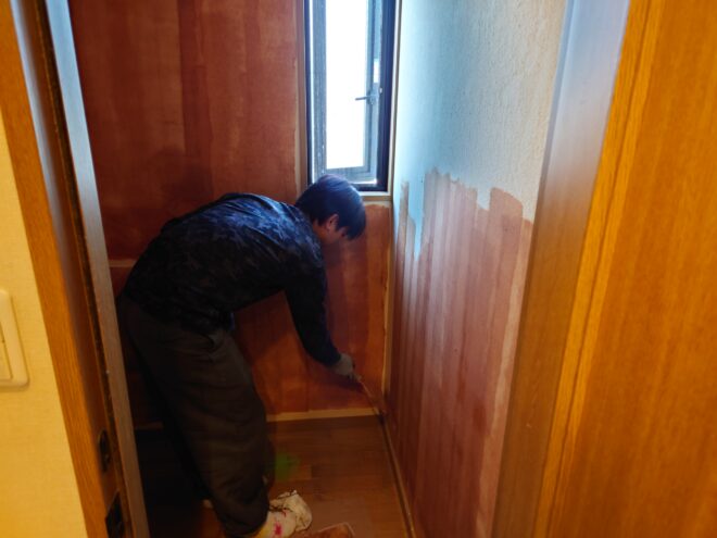 業者のヒトは知っていると思うのですが、トイレのクロスって剥がすとすごく臭いんです