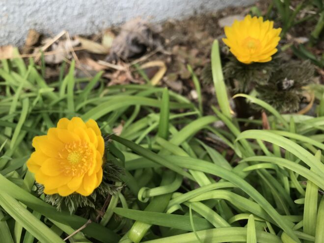 春を告げるフクジュソウがお店の玄関先に咲きました🌼